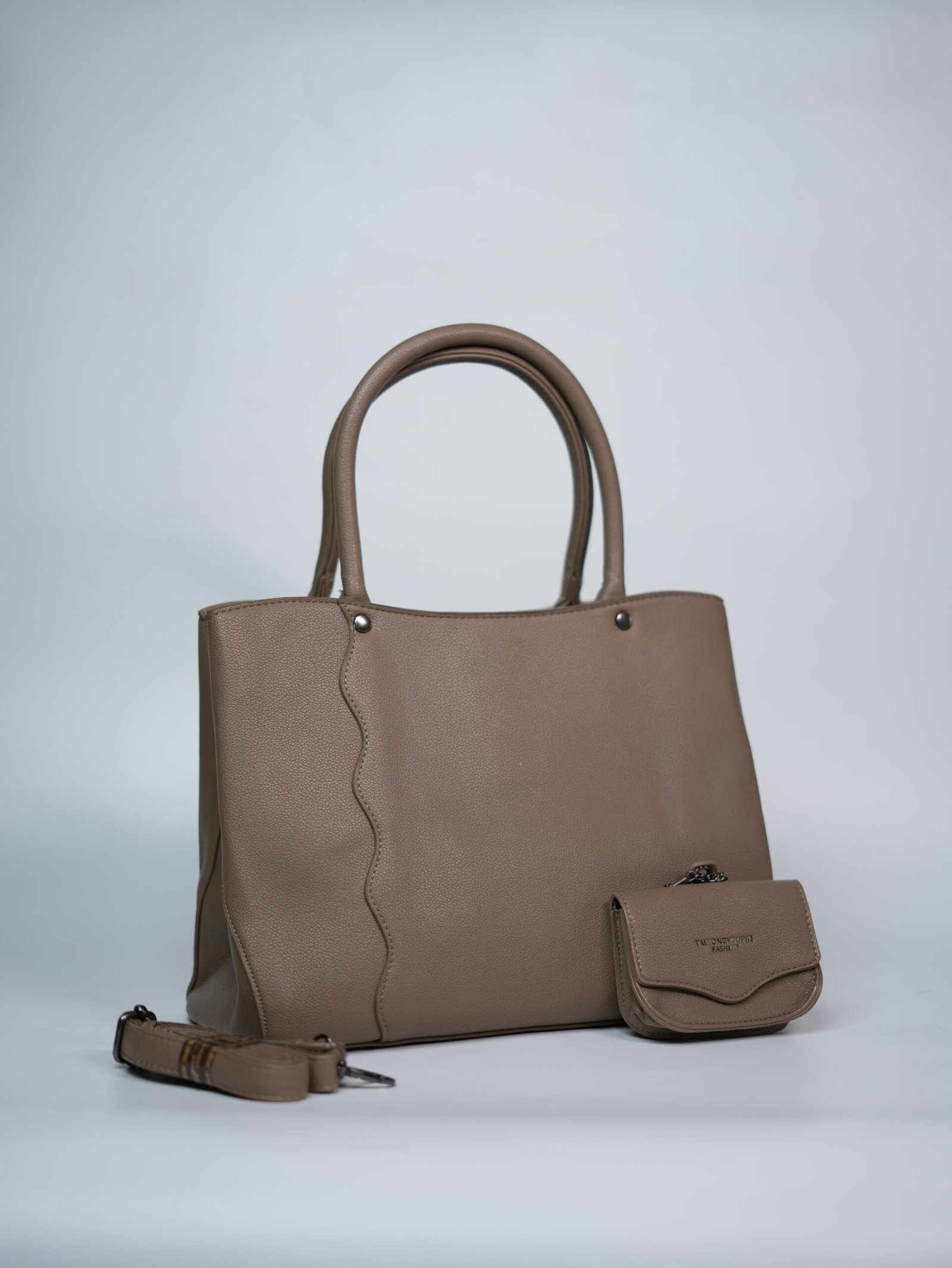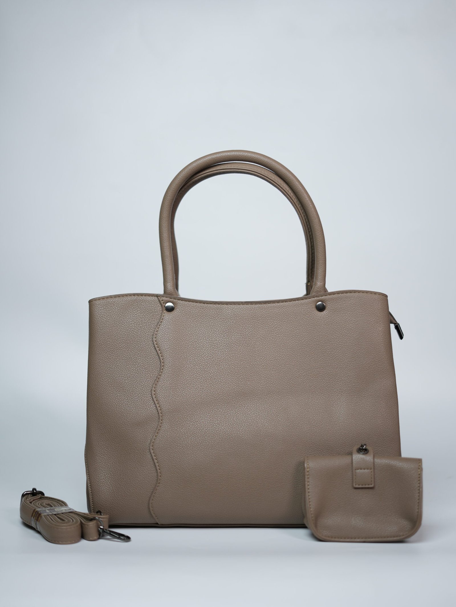 Step into everyday style with the Light Brown Tote Bag – Caramel Companion Set. This elegant tote offers two spacious inner compartments to hold all your essentials — from devices to documents — while keeping you organized in style. It includes a detachable sling belt for versatile carrying and a matching coin pouch for extra convenience. The warm light brown tone makes it a perfect pair with both formal and casual wear. A must-have set for those who love subtle charm with smart utility.