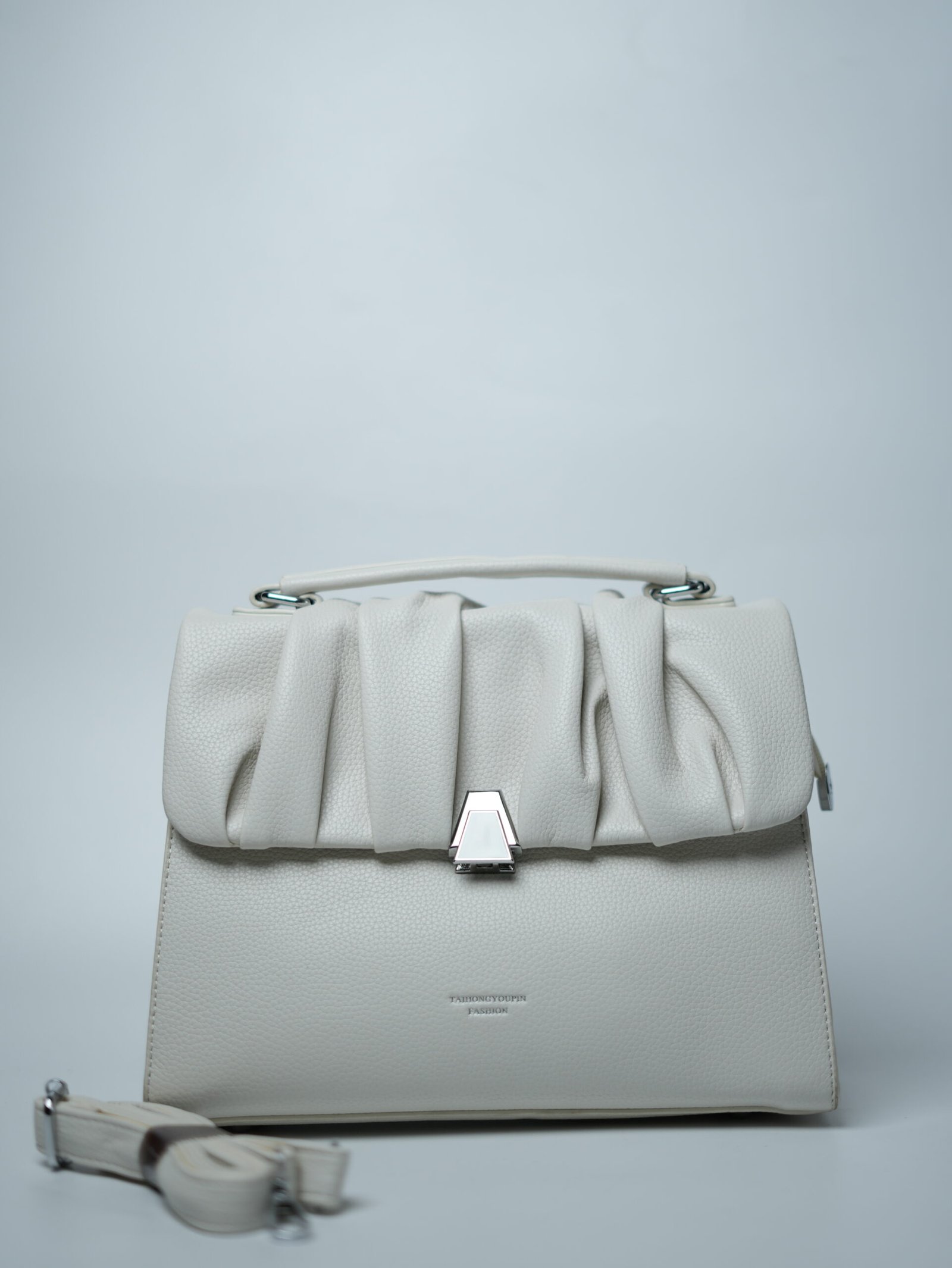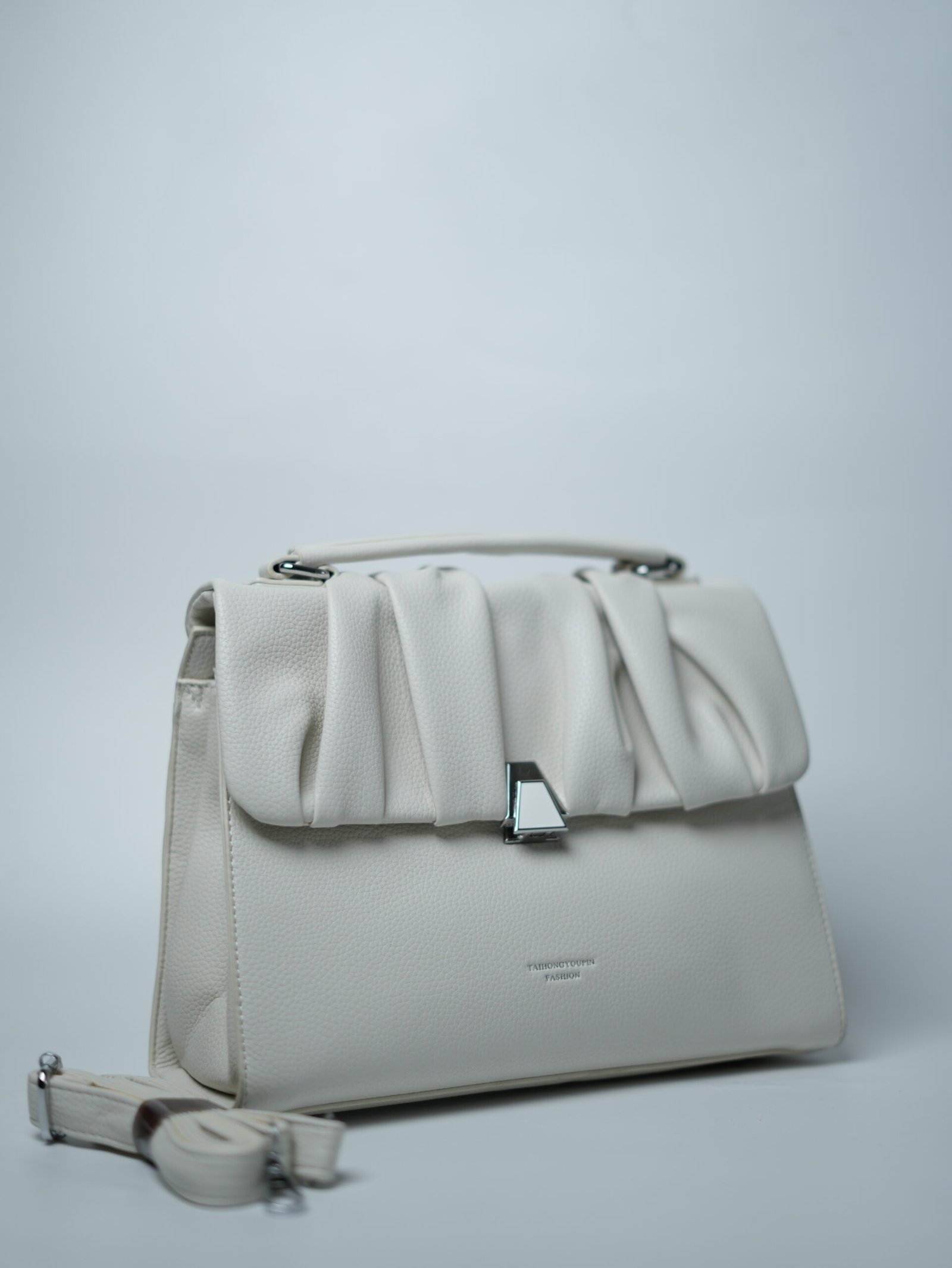 Introducing the White Hand Purse – Twisted Pearl Chic, a compact beauty that’s high on elegance. Crafted with a pleated flap design and finished with a twisted buckle lock, this purse is as stylish as it is secure. The two internal compartments help organize essentials with ease, while the extra sling belt lets you switch between a classic hand carry and a trendy sling look. A must-have for anyone who loves functional fashion with a luxe touch.